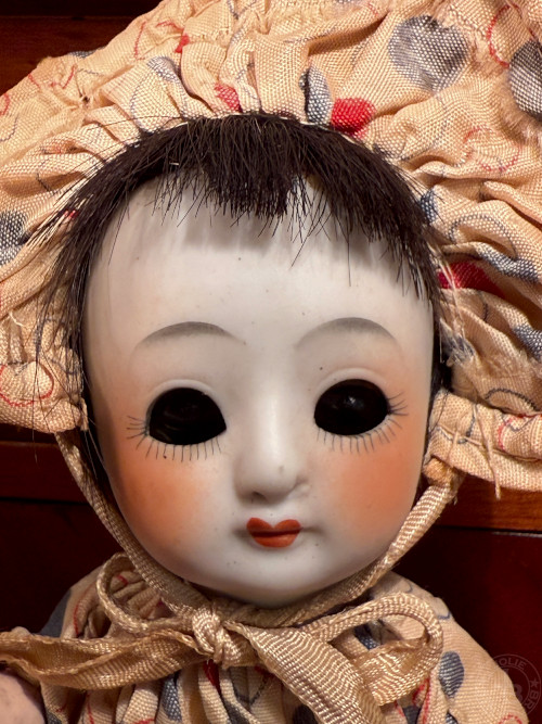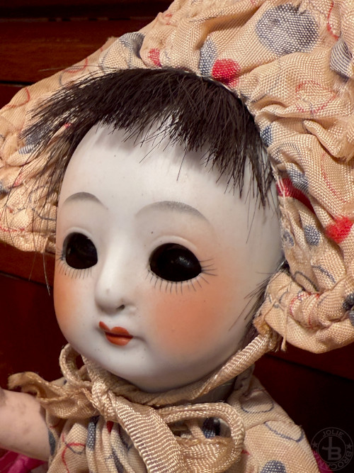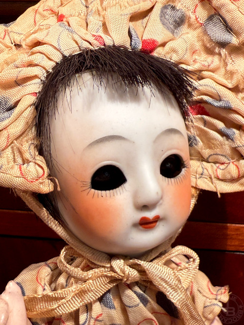 ドレスとボンネットは経年による汚れや傷みがありますが