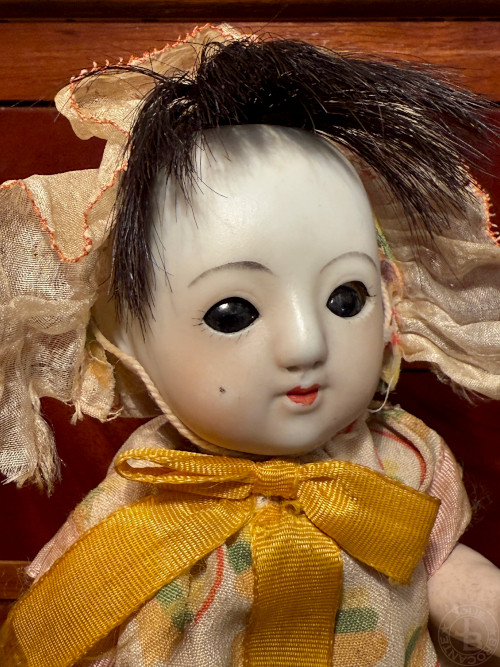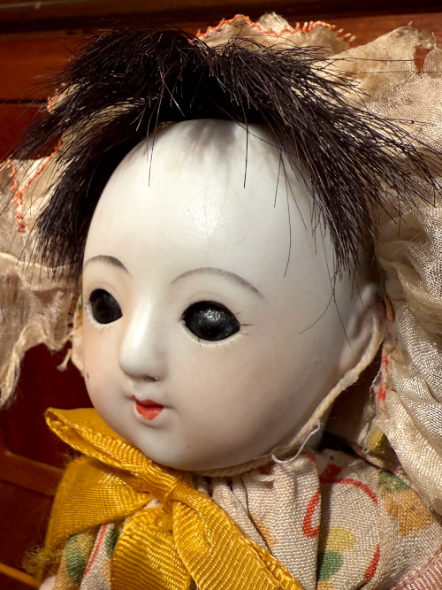 ドレスとボンネットは経年による汚れや傷みがありますが
