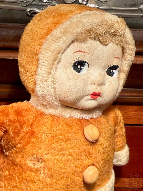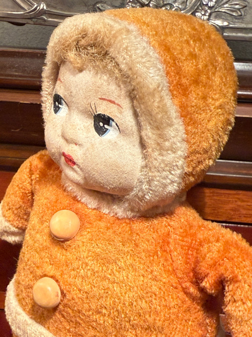 右の脇近くにドレスに穴があり中のわらが見えている部分があります。