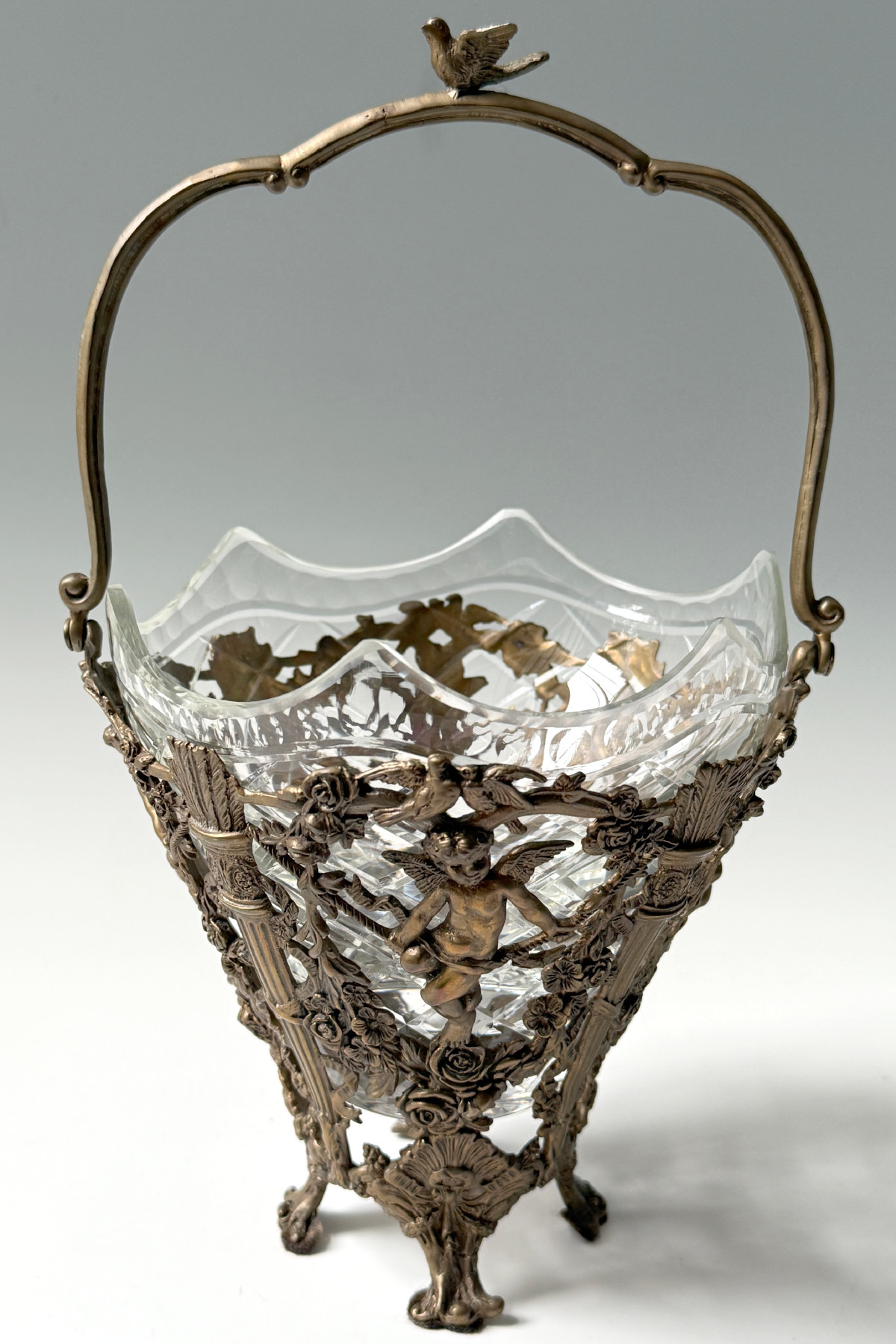 アンティーク 天使と薔薇のガラス器 ハンドル付き