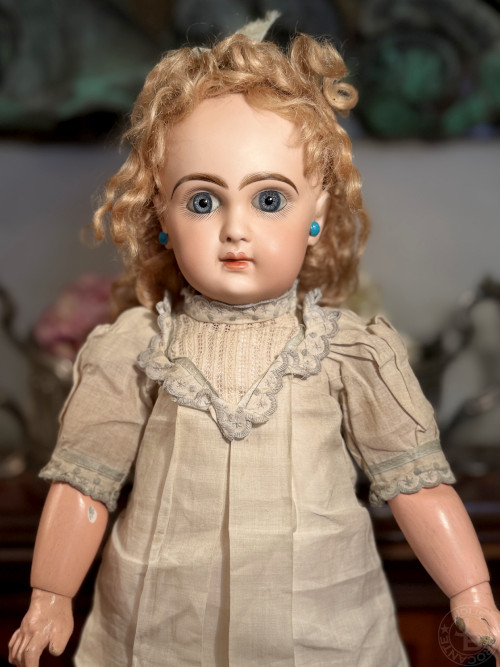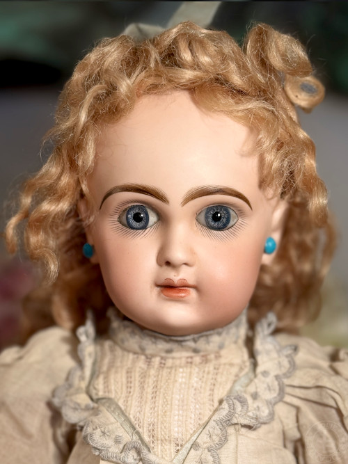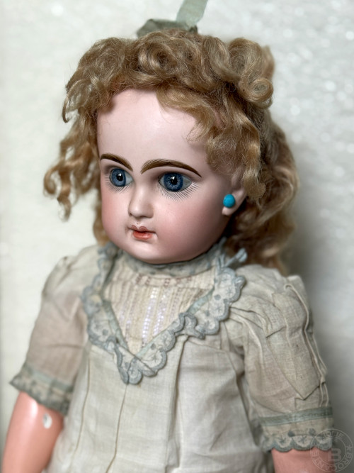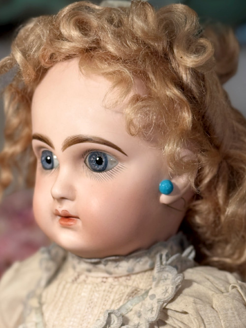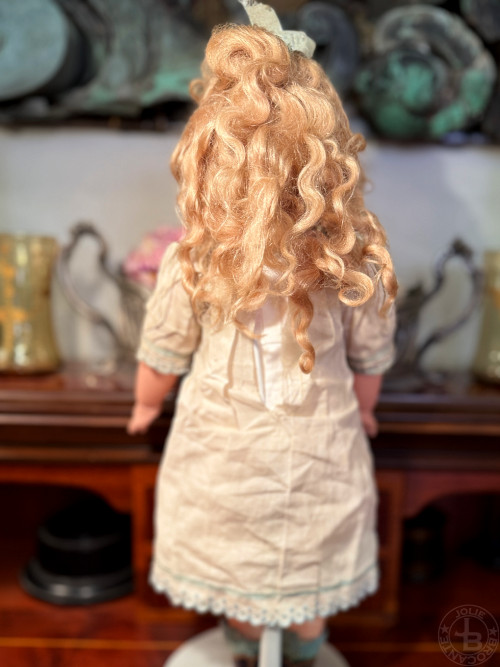 ウィッグはモヘアで出来ていて水色のリボンがついています。