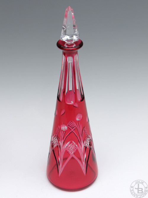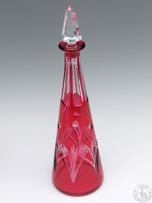 デカンタは円錐形で下部は線状のカット、中心付近は水玉のカット、