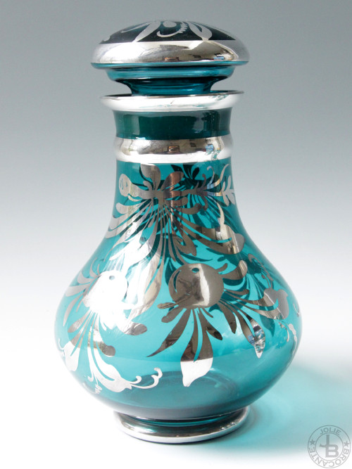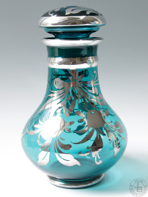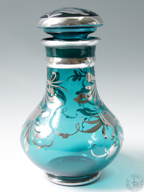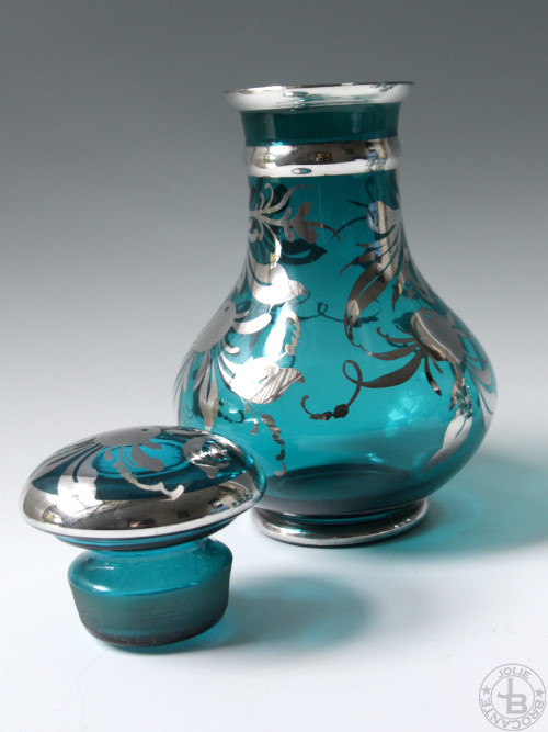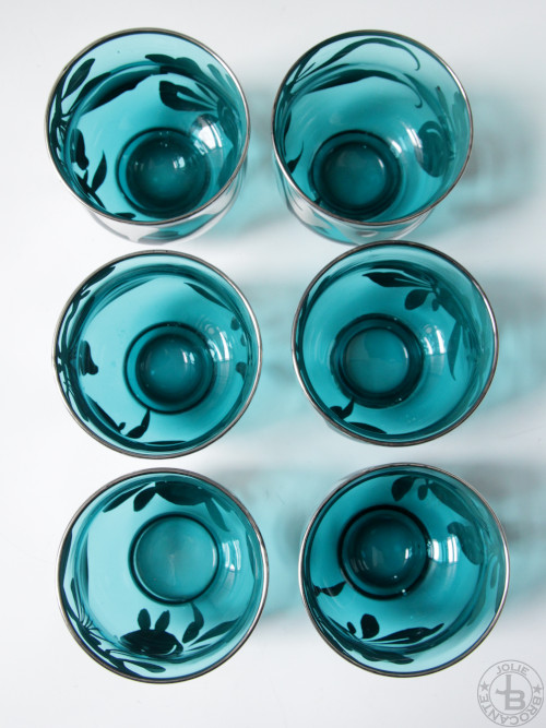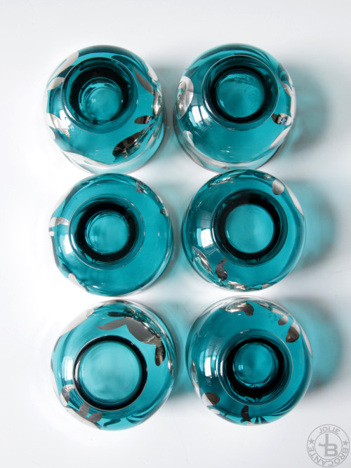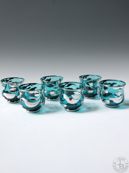 やや緑がかった青いガラスにシルバーオーバーレイが映えるセット。