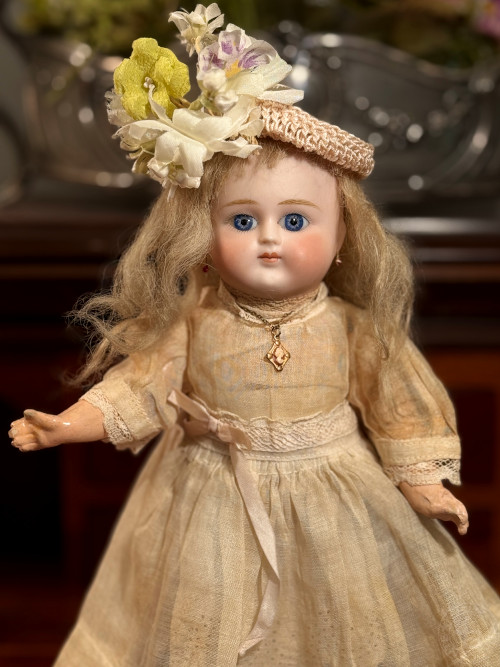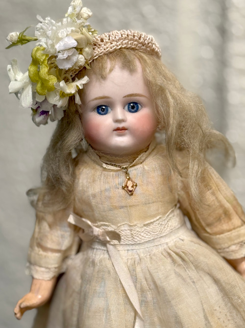 ドレスは古い生地を使って作られた物でシンプルなデザインですが