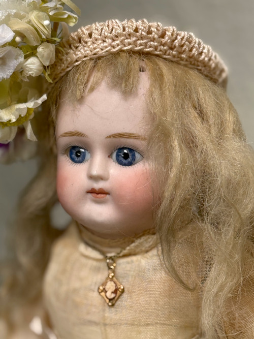 古いモヘアウィッグで紙のペイトと一体になっています。