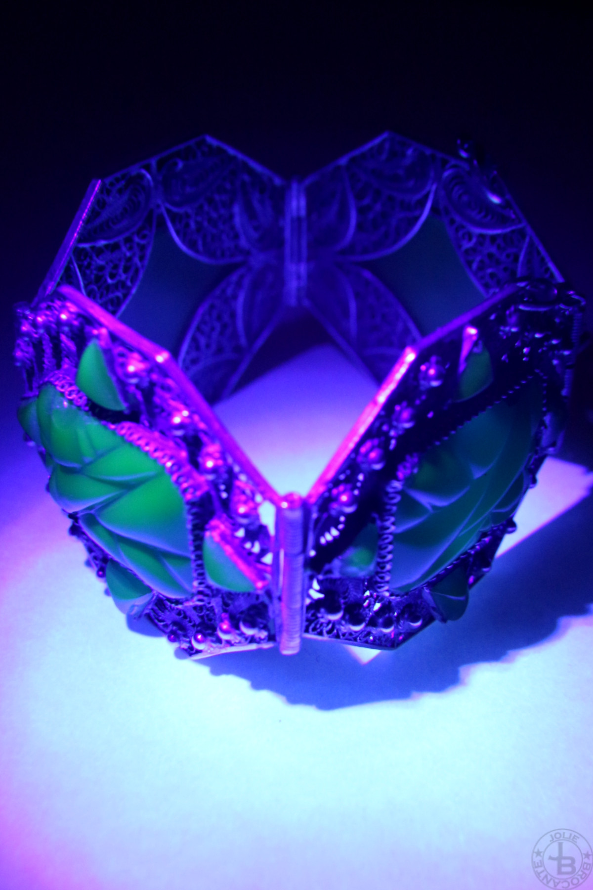 ボリュームのあるデザインに繊細な細工とガラスが美しいブレスレットです。