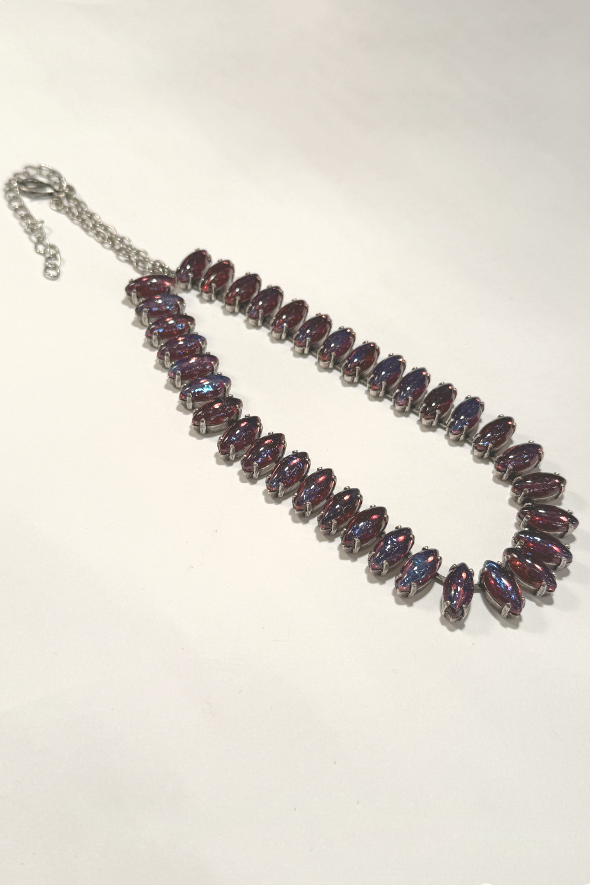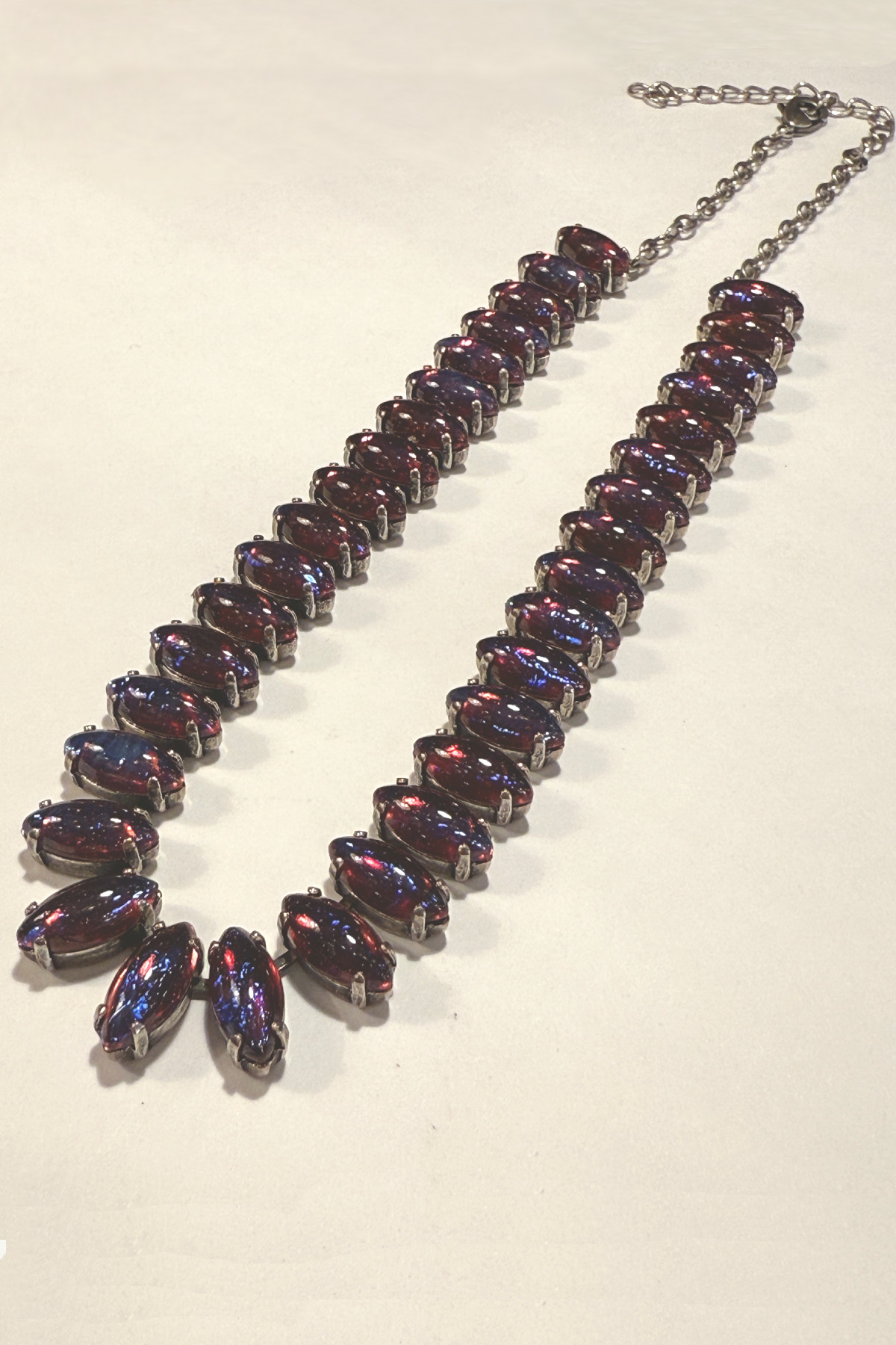 不思議な色合いが魅力のヴィンテージガラス、ドラゴンズブレスを35石使ったネックレス。