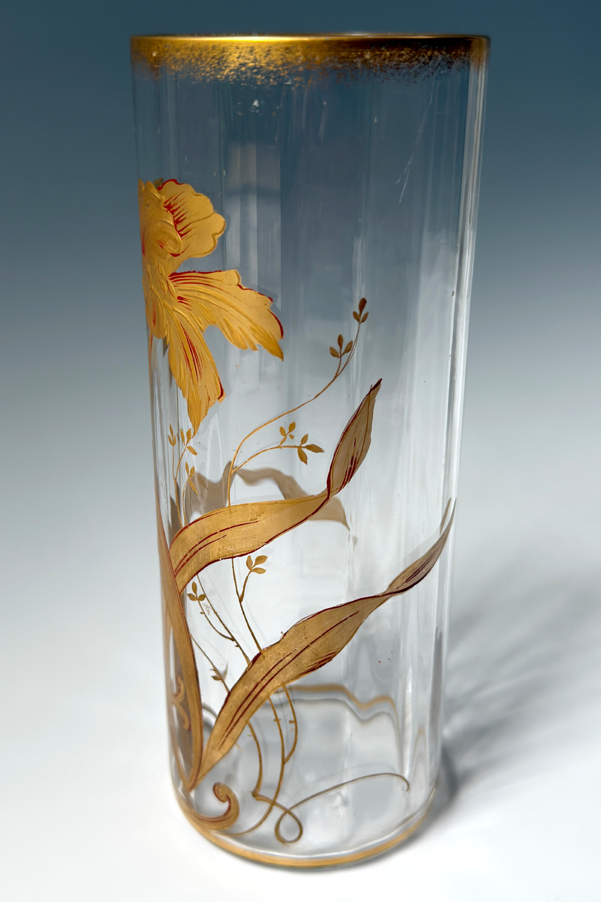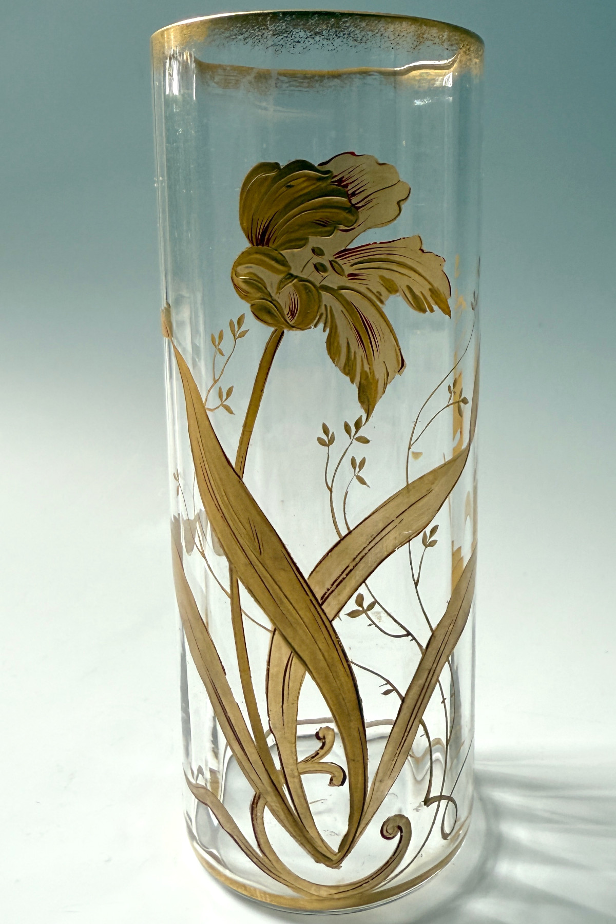 アールヌーボー期のBaccarat(バカラ)の花瓶。金彩で絵付けされた美しい花瓶。