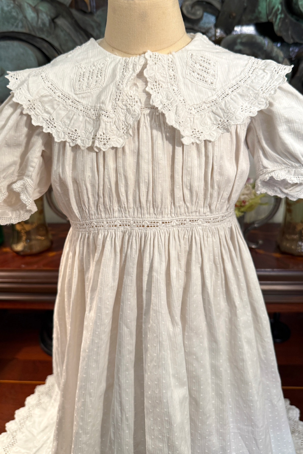 大きな襟のついたかわいらしいベビードレス。