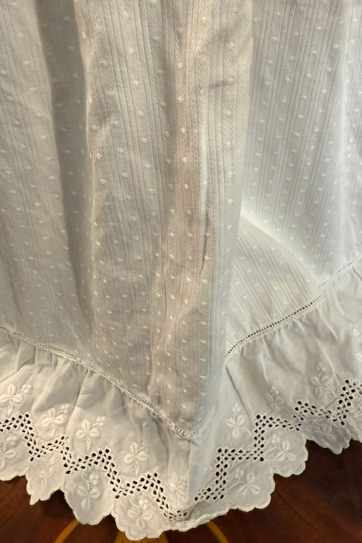 古いベビードレス ホワイトワーク クローバー 着丈63cm