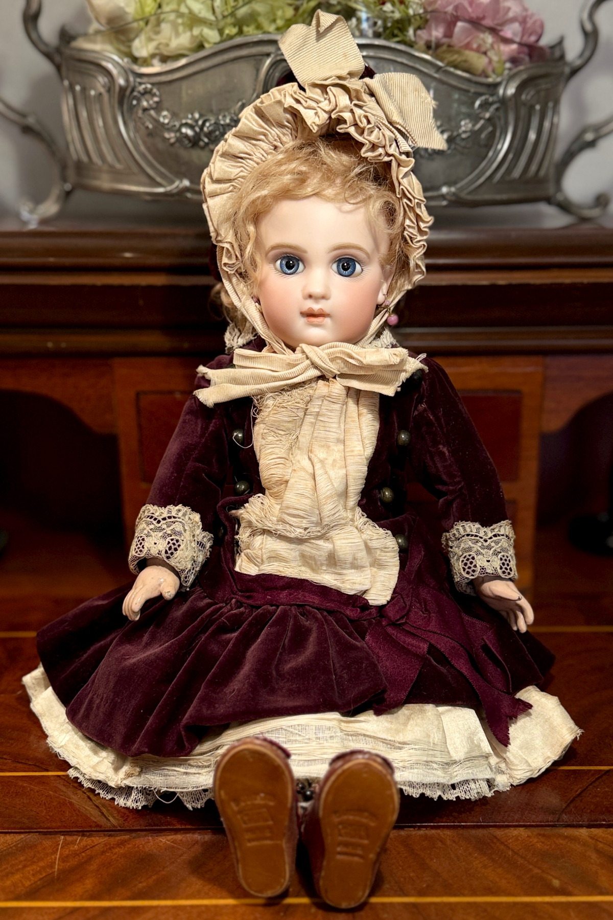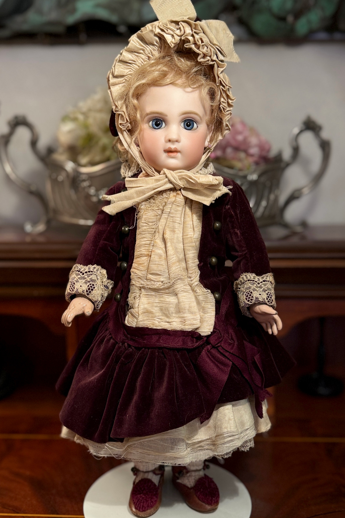 ▲▼ドレスも良い作りでアンティークのジュモーシューズを履いています
