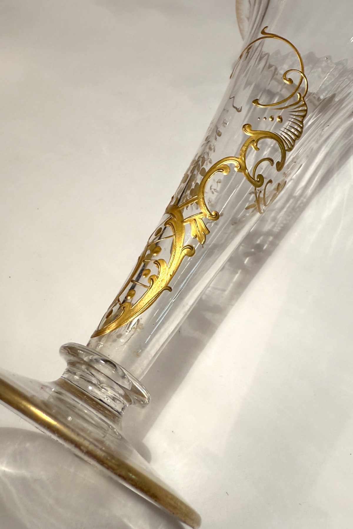 アンティーク クリスタルガラス 金彩 花瓶 H19.8cm
