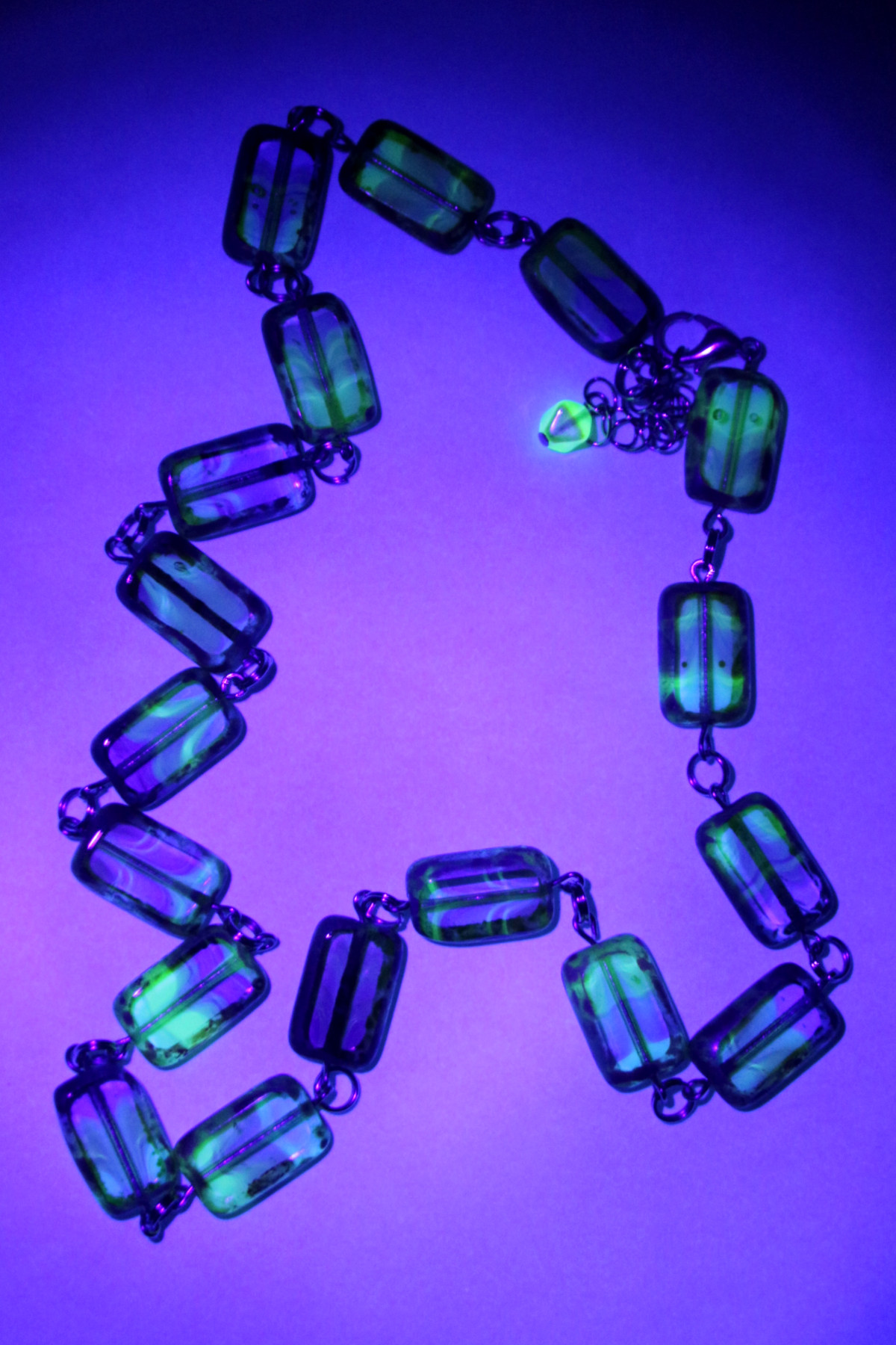 ヴィンテージのウランガラスで作られたネックレス。
