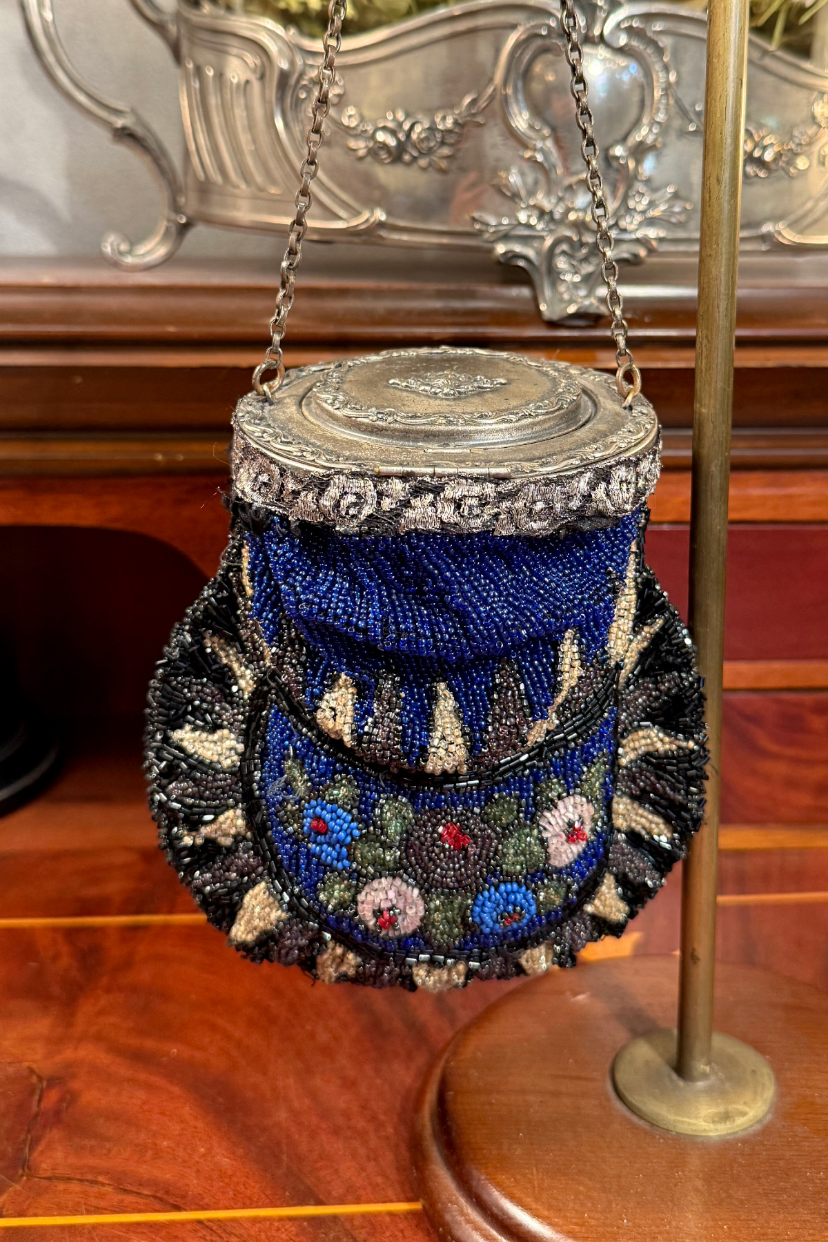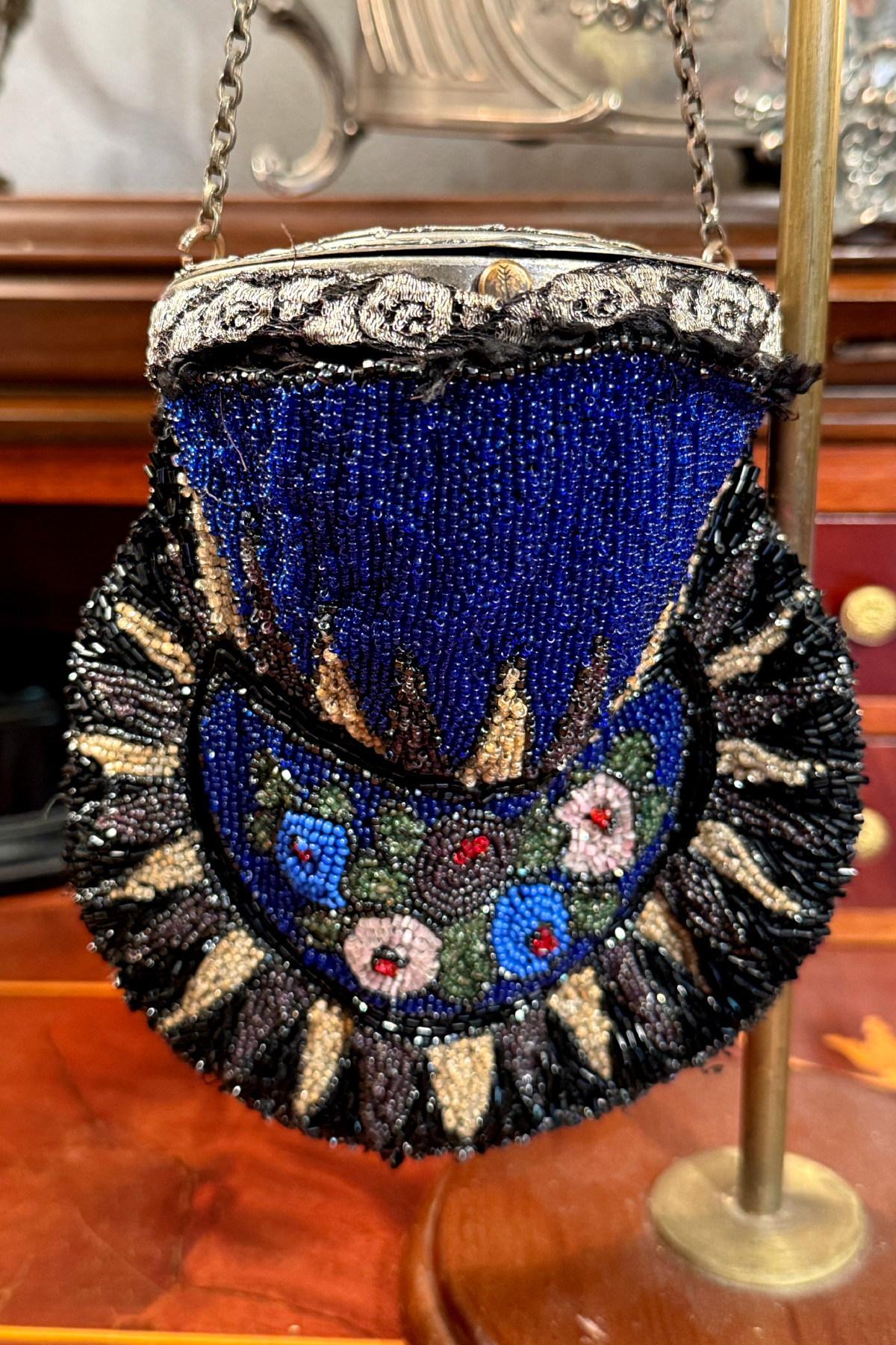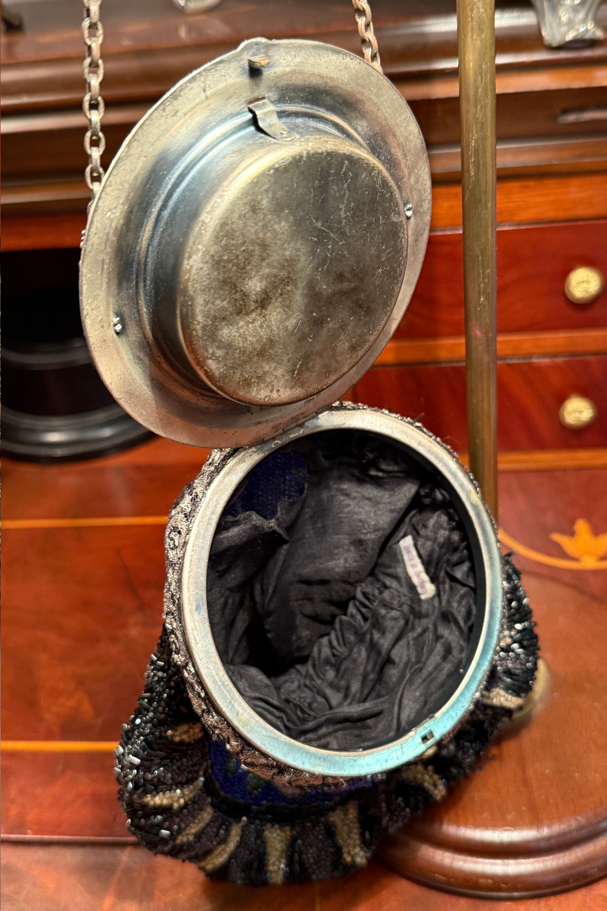 アールデコ期のビーズバッグ。この手のバッグとしては珍しい円形の口金が特徴的です。