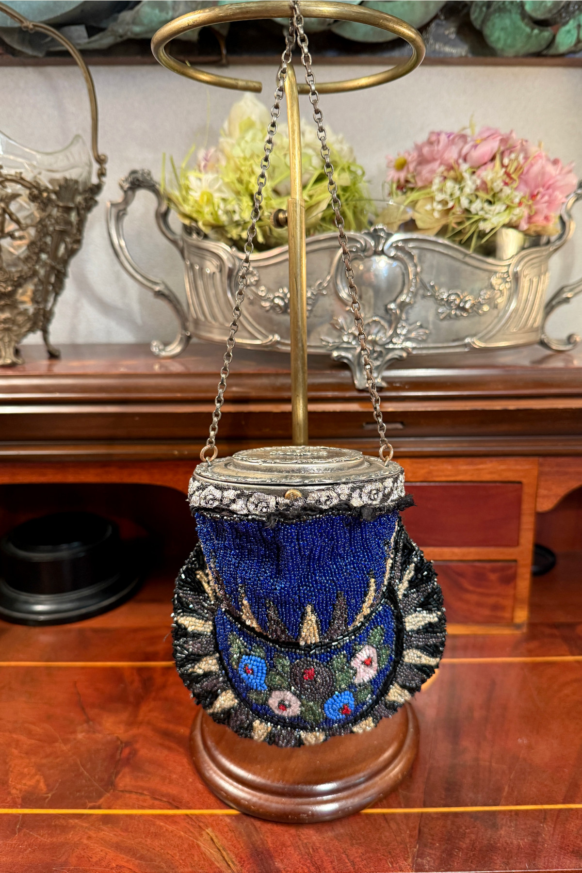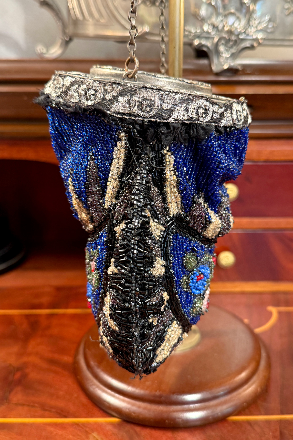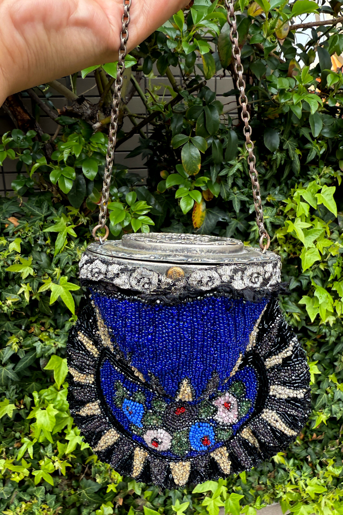 アールデコ期のビーズバッグ。この手のバッグとしては珍しい円形の口金が特徴的です。