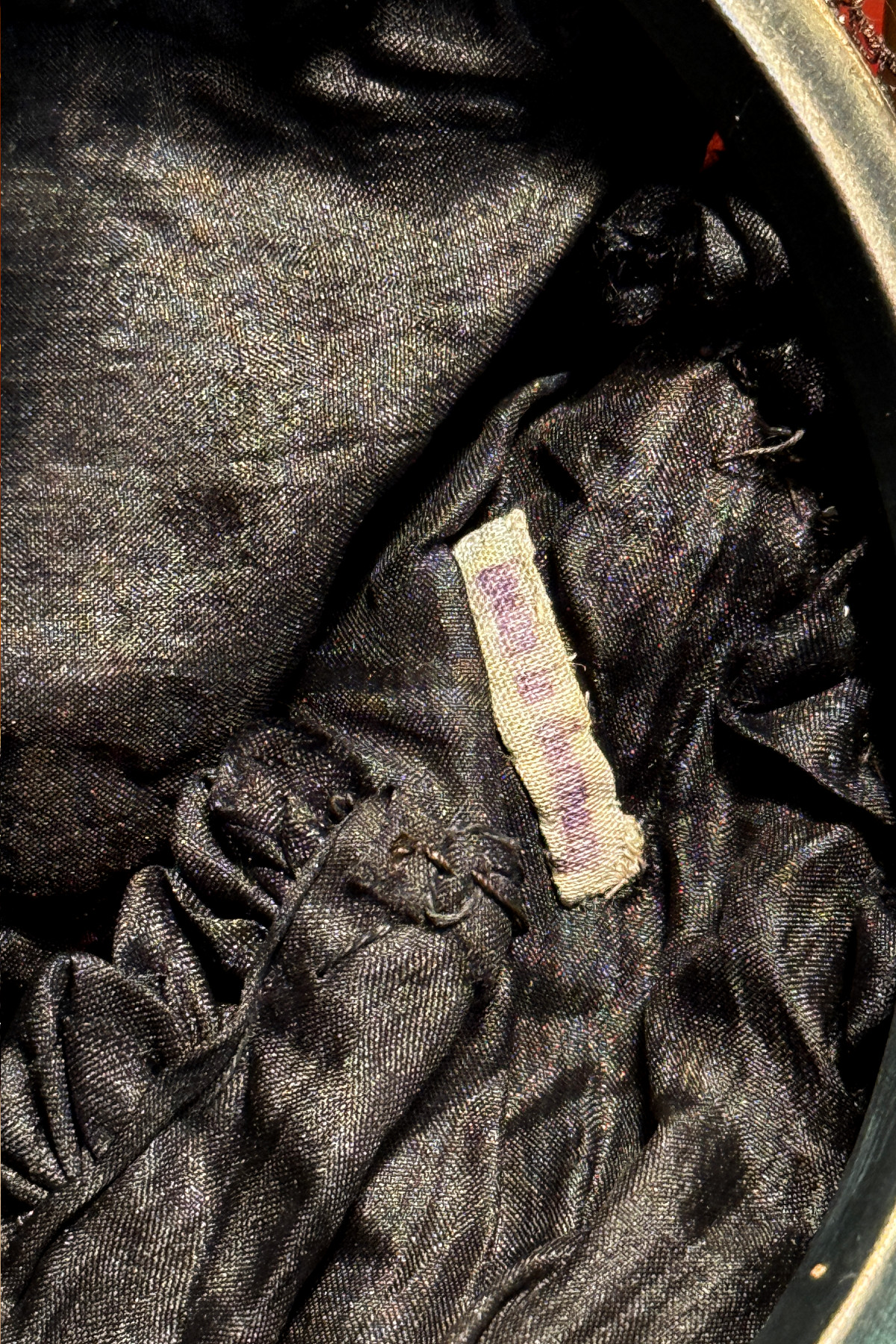 内側は黒いシルク製で一部劣化が見られます。