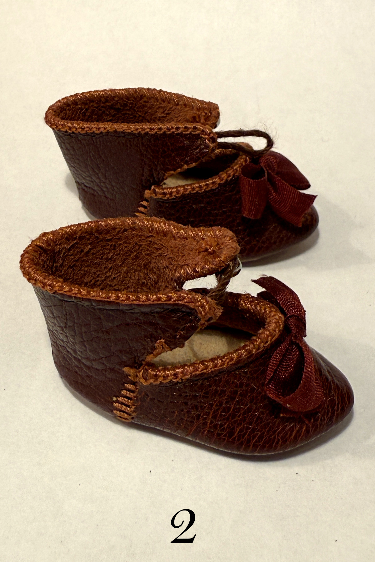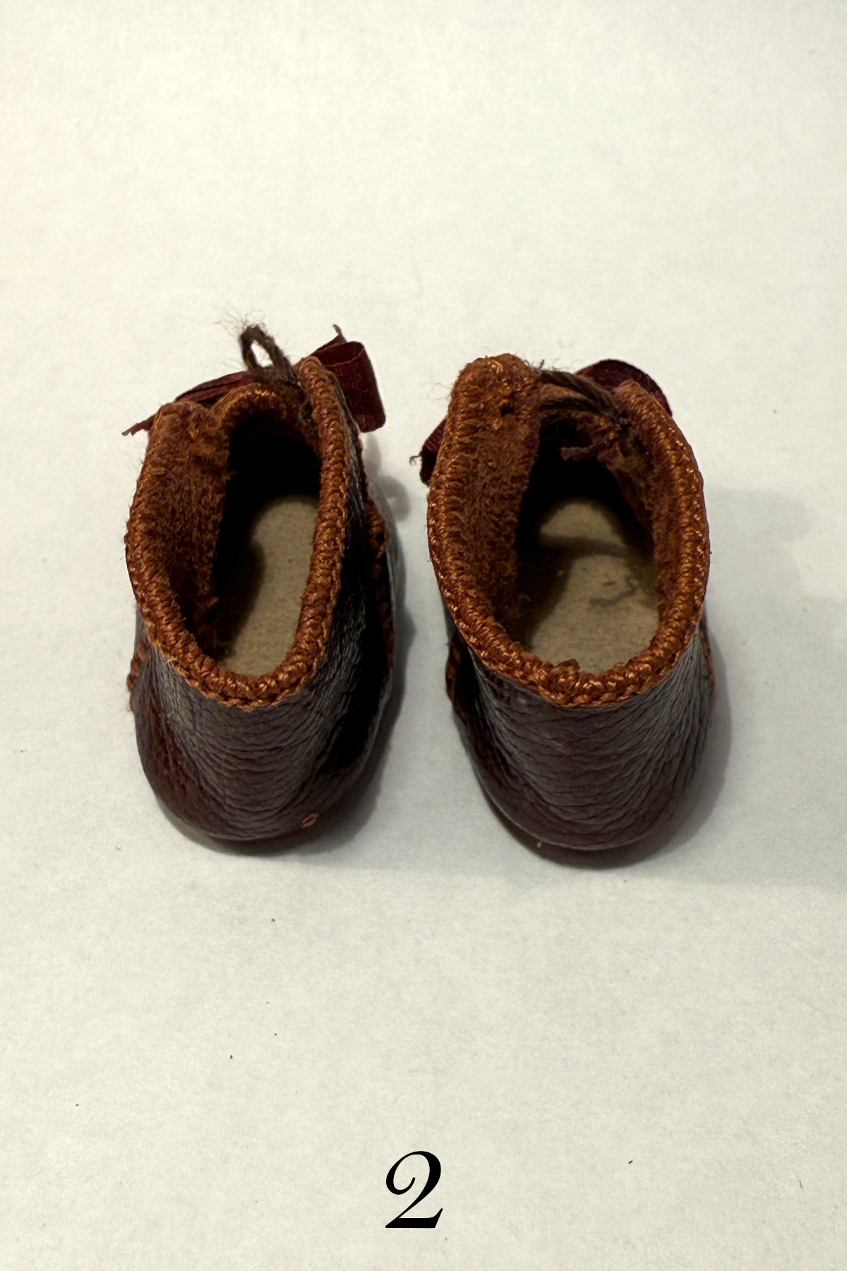 ブラウンの革のアッパーにレザーソールのかわいらしい靴。